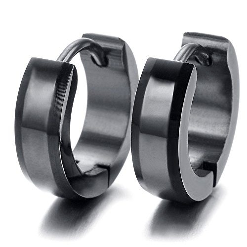 HAMANY Gioielli Orecchini da Uomo acciaio inossidabile,Huggie Incernierato,Nero, 4mm