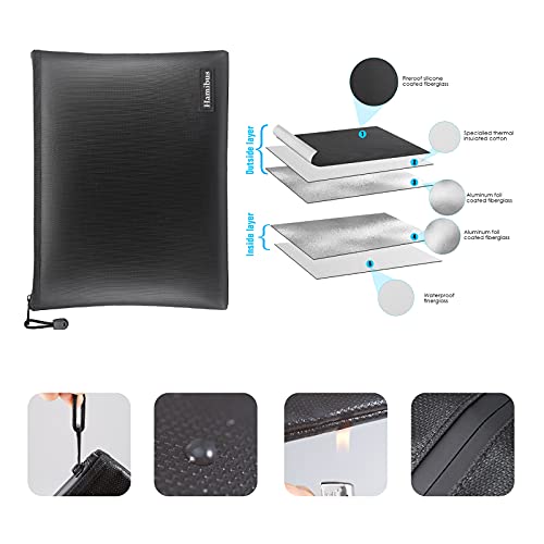 Hamibus - Borsa per documenti a prova di fuoco, 34,3 x 24,9 cm, resistente all'acqua, con cerniera, per documenti A4