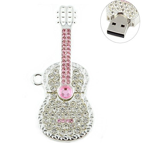 Hamiki 4 GB Shiny Crystal Diamond Guitar USB Flash Drive con necklace-black