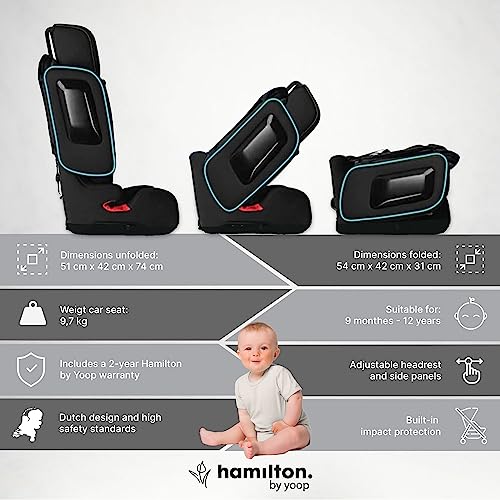 Hamilton by Yoop Cabrio Premium Seggiolino Auto Pieghevole - Per Bambini Da 9 Mesi A 12 Anni - ISOFIX - 51x42x74cm - 1° seggiolino auto pieghevole al mondo - Blu neon