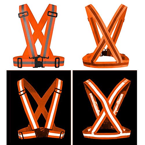 Hamkaw Gilet Catarifrangente Arancione Bretelle di Sicurezza Regolabile con Strisce Riflettente Gilet Elastico ad Alta visibilità per Lavoro Moto Bici Corsa Jogging