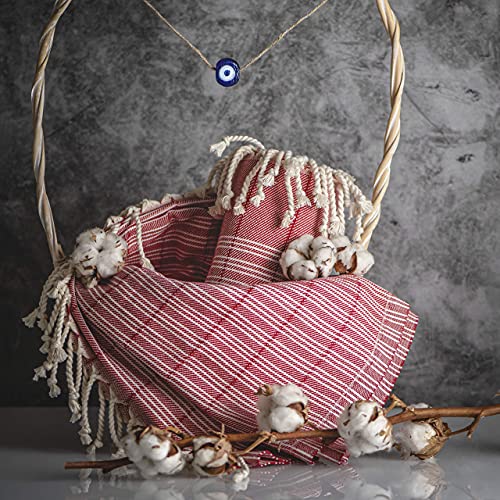 Telo Hammam Pestemal Turco Con il Malocchio 100% Cotone per Bagno, Spiaggia, Palestra Assorbente ad Asciugatura Rapida, 90*180cm,600gr, Telo per Viaggiare, Spa, Picnic, Coperta, Letto, Tovaglia(Rosso)