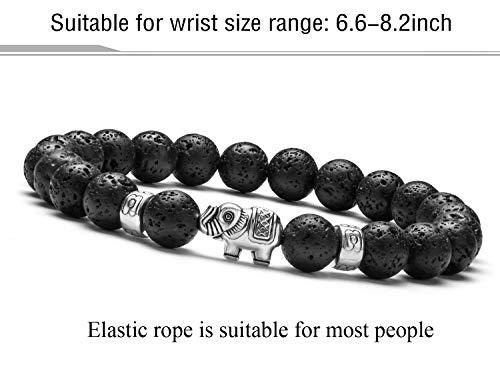 Hamoery uomini donne 8 mm lava Rock perline braccialetto pietra agata braccialetto elastico braccialetto, elefante, materiale non metallico, colore: Lava Stone, cod. zjsz011-Lava Stone