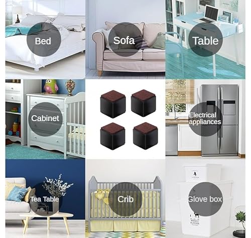 【Materiale di alta qualità】Rialzi per mobili realizzati in solido acciaio al carbonio e fondo in tessuto non tessuto Design, capacità di carico fino a 500 kg, progettato per sollevare e stabilizzare i mobili.