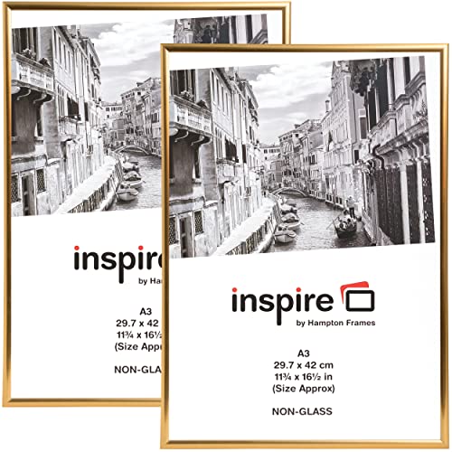 Hampton Frames BACKLOADER A3MARGLD-2PK - Cornice portafoto in formato A3 (29,7 x 42 cm) in oro con certificato fotografico, confezione da 2 pezzi