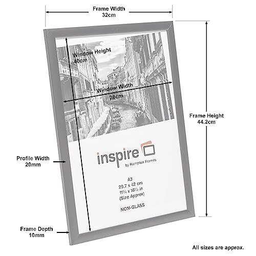 Hampton Frames BLACKWOOD - Cornice portafoto in legno di pino con certificato in acrilico, non vetro, formato A3, 30 x 42 cm, colore: Nero