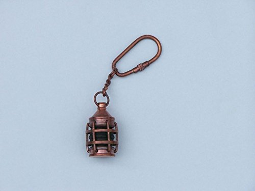 Hampton Nautical k-224-ac-green 3 x glass-101 Rame Anticato Anchor Green Lantern Key Chain 12,7 cm - Nautical Key Chain - Decorazione in Rame Anticato