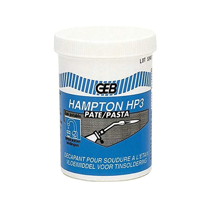 HAMPTON HP3 stagnatore, pasta in barattolo da 150 ml. Speciale per l'acqua potabile. Adatto alla brasatura stagno/rame e stagno/argento. Adatto anche per i metalli comuni. Biodegradabile, può essere pulito con acqua. Non adatto all'acciaio inossidabile e all'alluminio.