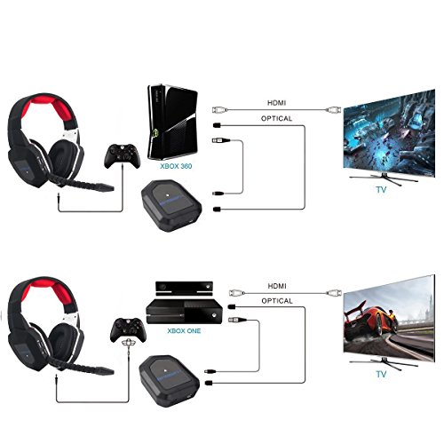 HAMSWAN 2.4GHz Wireless Cuffia da Gioco Gaming Cuffie Over Ear per XBOX 360/XBOX ONE/PS3/PS4 Con Microfono Staccabile USB2.0 Batteria Ricaricabile L'effetto Cancellazione Rumore(Un'adattatore di Microsoft o Kinect è necessario per l'utilizzo con XBOX ONE)