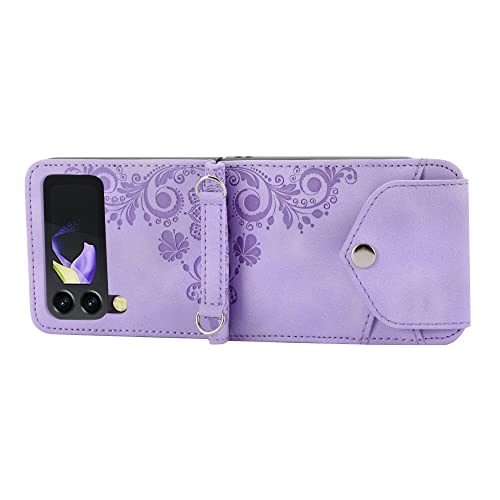HANASE Custodia in pelle per carte di credito con cordino a tracolla per Samsung Galaxy Z Flip 4 Flip4 Flip 3 Flip3 5G Custodia per telefono con porta carte, marrone, per Z Flip 3
