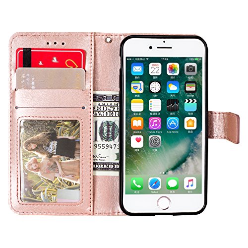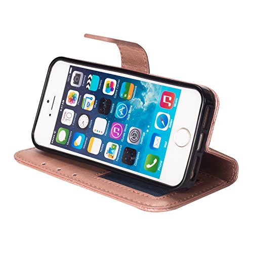 Hancda Cover Custodia per iPhone SE/iPhone 5S / iPhone 5, Flip Case Cover Portafoglio Custodia Pelle con Magnetica Silicone Morbida Cover Cuoio Libro Protettiva Completa per iPhone SE/5S/5,Oro Rosa