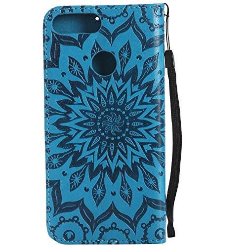 Hancda Cover per Huawei Honor 9 Lite [Non per Honor 9], Custodia Cover Flip Case Portafoglio Magnetica Libro Pelle Protettiva con Disegni Silicone Case Antiurto per Huawei Honor 9 Lite,Fiori Blu