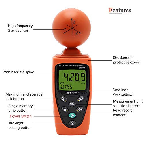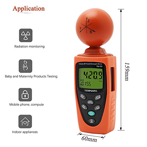 【Ampia Applicazione】Adatto a una varietà di elettrodomestici e ambienti di test: telefoni cellulari, computer, fornelli a induzione, forni a microonde, misurazione dell'intensità del campo di onde elettromagnetiche ad alta frequenza (RF), misurazione della densità di potenza irradiata dell'antenna della stazione base del telefono cellulare, comunicazione wireless applicazioni (CW, TDMA, GSM, DECT), misura di potenza RF per trasmettitori, ecc.