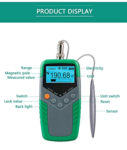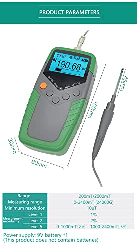 Hanchen Misuratore di Gauss 2400mT Misuratore di Tesla con Sensore Hall Tester di Campo Magnetico Portatile (Livello 1)
