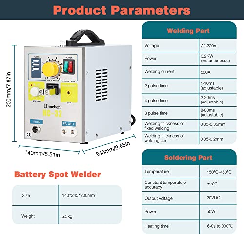 【Saldatura Fissa e Penna Mobile】La testa di saldatura fissa è adatta per strisce di nichel nichelate 0,05 - 0,35 mm di spessore o nichel puro 0,05 - 0,2 mm. La penna per saldatura mobile è adatta per strisce di nichel nichelato da 0,05-0,2 mm o per strisce di nichel puro da 0,05-0,15 mm. La saldatura può essere eseguita rapidamente con la penna, migliorare l'efficienza del lavoro.