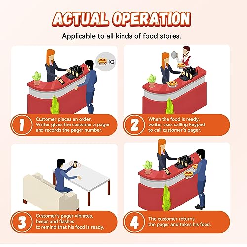 Due modalità di promemoria: il cercapersone da ristorante ha due modalità rapide: 1) cicalino + flash + vibrazione, 2) flash + vibrazione. Materiale ABS di protezione ambientale: il sistema di chiamata per cercapersone da ristorante è realizzato in materiali ABS ecologici, atossici e innocui, in modo che i bambini e le donne incinte possano stare tranquilli.