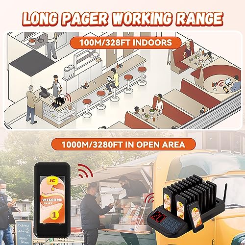 Hanchen Sistema di ricerca per ristoranti Sistema di chiamata wireless Cicalino di distanziamento sociale Max 98 Set di cercatori per asilo nido con vibrazioni e cicalini in attesa per camion di