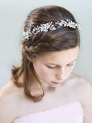 Handcess - Accessorio per capelli da sposa, con perle argentate, con strass, per donne e ragazze