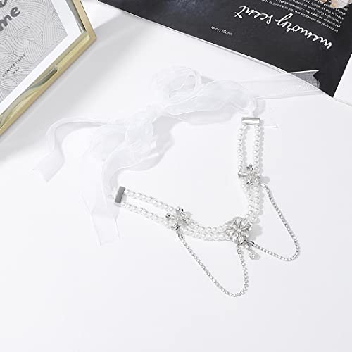 Handcess Bride Pearl Crystal Necklace Silver Rhinestones Choker Necklaces Bridal Wedding Jewelry Accessories for Women and Girls (3)