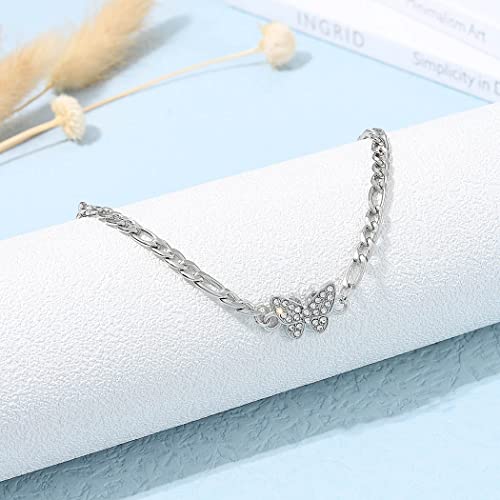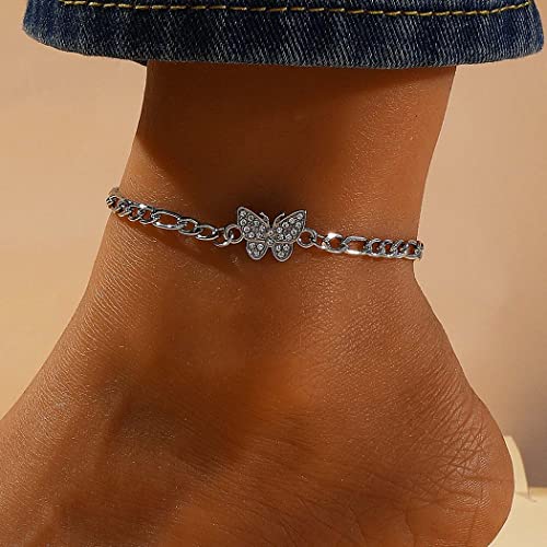 Handcess Cavigliere a farfalla Bracciali alla caviglia in cristallo argento Gioielli per piedi da spiaggia per donne e ragazze