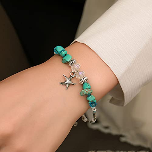 Handcess Cavigliere Boho Starfish Braccialetti alla caviglia turchese argento Catene da spiaggia perline per donne e ragazze