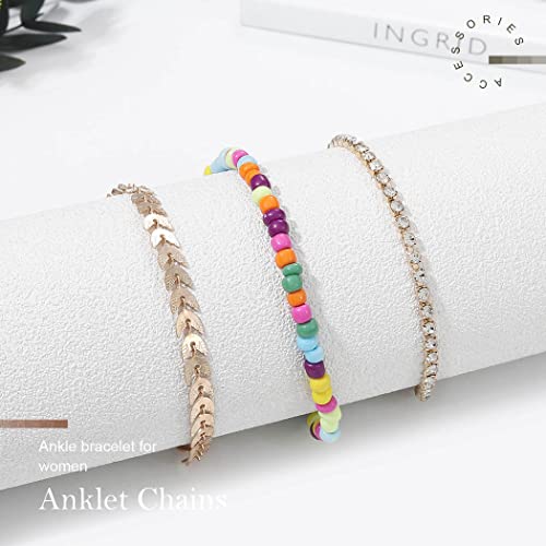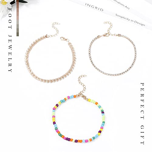 Handcess Cavigliere a strati Boho Bracciali alla caviglia con perline colorate in oro Catene per piedi in cristallo a lisca di pesce per donne e ragazze