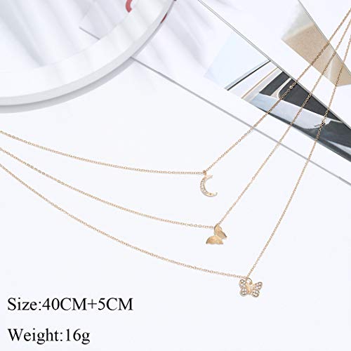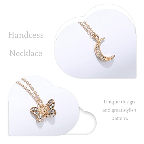 Handcess Boho Collane multistrato Collana con ciondolo luna d'oro Collana girocollo a farfalla con cristallo per donne e ragazze