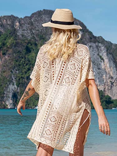 Coprire la spiaggia è realizzato in poliestere, leggero e traspirante, morbido e confortevole da indossare in estate. Abito da spiaggia con costume da bagno vuoto all'uncinetto albicocca con design scavato, caratterizzato da uno stile all'uncinetto, è un vestito indispensabile in estate. Colore: albicocca.