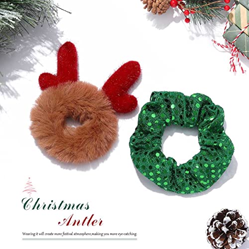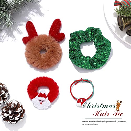 Handcess 4 Pcs Natale Antler capelli Scrunchies Paillettes elastico capelli cravatte Fluffy Babbo Natale Ponytail Holders Accessori per capelli per le donne e le ragazze