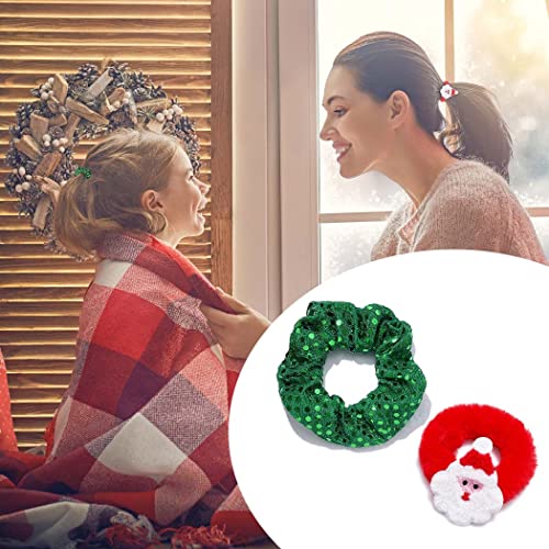 La cravatta per capelli di Natale è realizzata in tessuto di paillettes verde glitter, pelliccia sintetica, con elastici durevoli. È buona elasticità e morbida al tatto, adatta per capelli spessi, capelli sottili o capelli ricci, ecc.