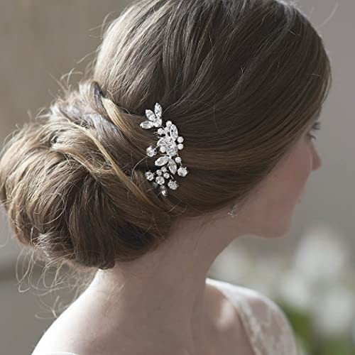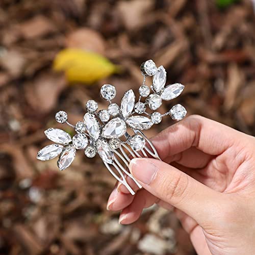 Handcess - Pettine per capelli da sposa, con strass, colore argento, accessori per capelli da sposa e damigelle d'onore