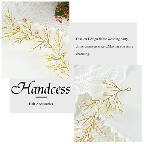 Handcess, pettini per capelli da sposa, con perle argentate, strass e figlie di vite, accessori per capelli per sposa, donne e ragazze, oro