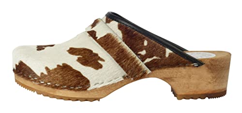 Handewitter Clogs Zoccoli in legno di mucca, marrone/bianco, marrone/bianco, 39 EU