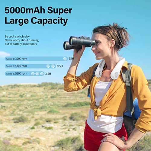 HandFan Ventilatore Portatile da Collo,5000mAh Ricaricabile USB Ventilatore Mini,15 Ore Di Durata Della Batteria,3 Velocità Per Ufficio,Casa,Aria Aperta,Campeggio,Viaggi e Sport, Bianca