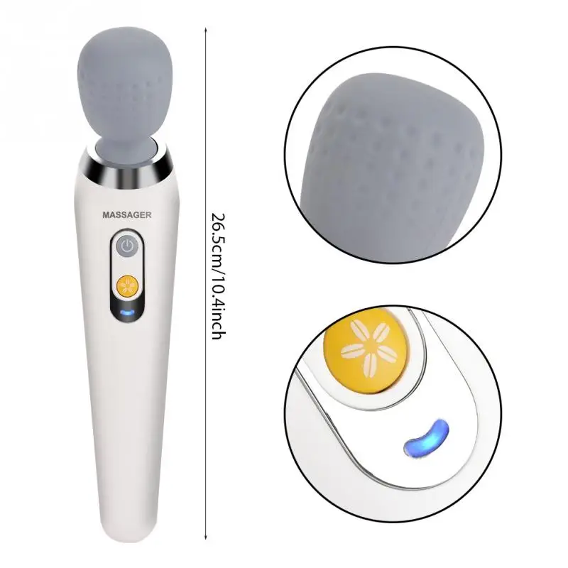 Handheld Electric Wand Massager Vibrating Kneading Cordless Rechargeable for Back Neck Shoulder Full Body Pain Relief 100-240V