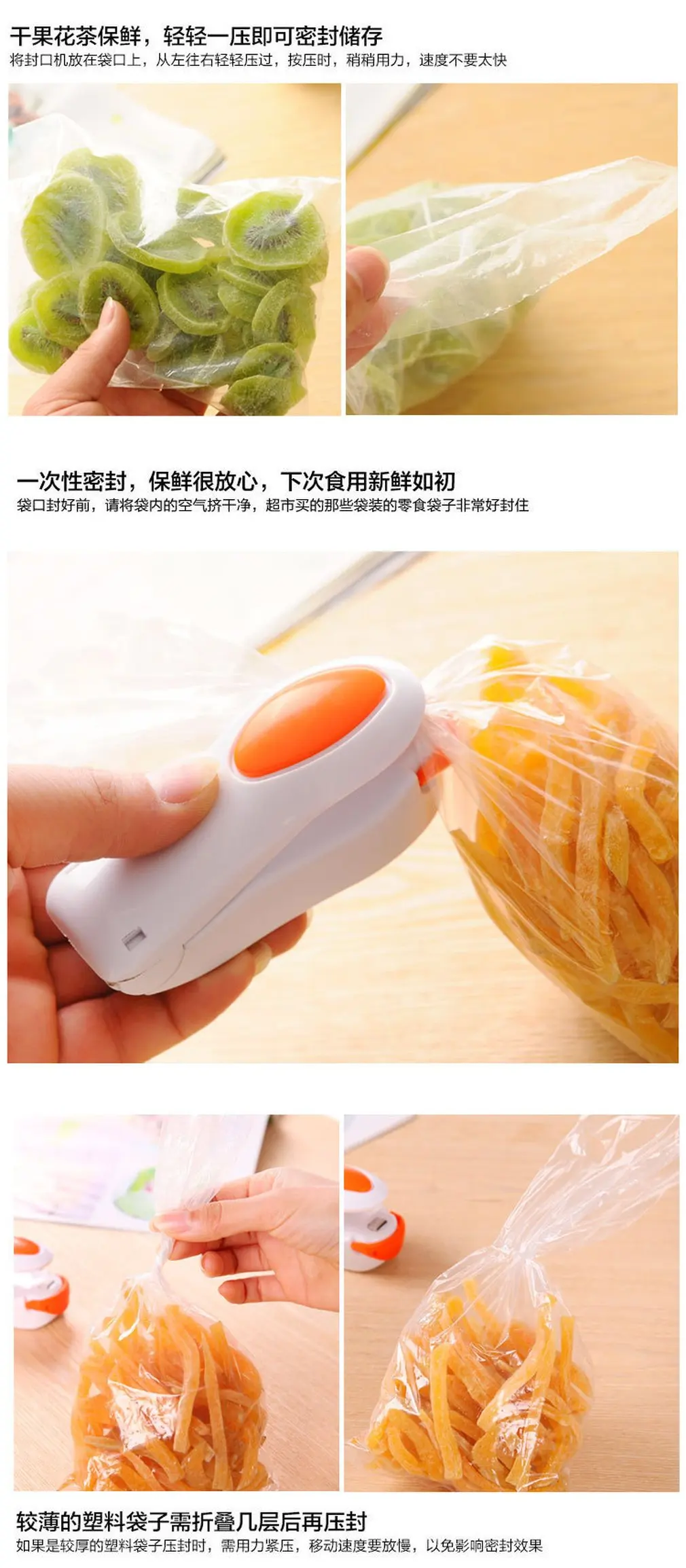 Handheld Portable Bag Clips Mini Electric Heat Sealing Machine Impulse Sealer Seal Packing Plastic Bag
