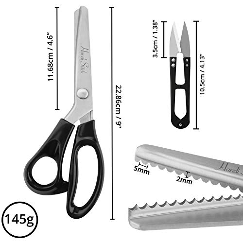 Handi Stitch Forbici Zig Zag per Stoffa - Lunghezza Tot. 22,86cm - Forbici da Sarta Professionali Nere in Acciaio Inox- Forbici da Sarto da Usare Come Forbici Cucito, Forbici Sartoria, Forbici Tessuto