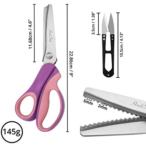 Handi Stitch Forbici Zig Zag per Stoffa - Lunghezza Tot. 22,86cm - Forbici da Sarta Professionali Rosa in Acciaio Inox- Forbici da Sarto da Usare Come Forbici Cucito, Forbici Sartoria, Forbici Tessuto
