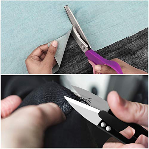 MANICI ERGONOMICI IN GOMMA MORBIDA: I manici delle forbici zig zag tessuto sono in gomma morbida, rosa e viola. Ciò fornisce un taglio comodo e regolare su qualsiasi superficie piana e una presa sicura. La lama inferiore estesa delle forbici stoffa aiuta a sollevare il materiale per un taglio più preciso e consente di ottenere la forma perfetta a triangolo zig-zag. Le forbici sartoria professionali sono affilate fino alla punta, quindi la precisione non è compromessa.