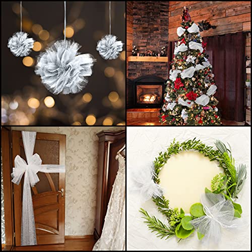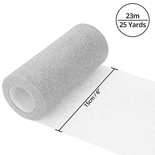 ROTOLI TULLE MORBIDI: Ogni rotolo tulle per confetti diamantato è perfetto per creare decorazioni, vestiti e molti altri accessori artigianali. Realizzati in poliestere resistente, riceverai 2 rotoli tulle argento glitterato scintillanti. Ogni rotolo è largo 15 cm e fornisce 23 m di organza per confetti, per un set totale di 46 m. Il sottile nastro argento Natale non si sfilaccia e non necessita di cuciture o rifiniture. Si prega di notare che questo prodotto è ignifugo.
