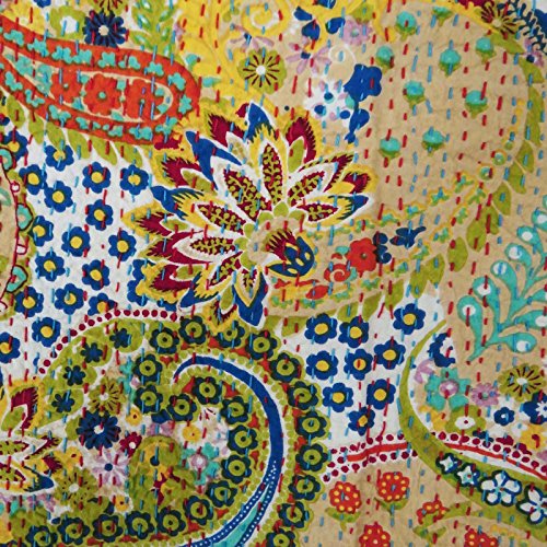 Handicrunch Pure Cotton Gudri New Kantha Stitch Quilt Floral Pattern Twin Size Bed Spread 88 X 60