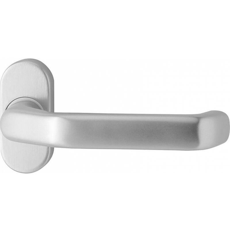 Maniglia a leva ignifuga mezza serie Ares FS 1200/2133 - In alluminio. anodizzato. color argento - Direzione DIN sinistra-destra - Coperchio senza rosetta per chiave. con rosetta per maniglia a leva - Cuscinetto fisso - Collegamento a perno. avvitato a scomparsa. con camme di supporto - Direzione di arresto della maniglia utilizzabile per destra/sinistra. Fissaggio della maniglia con perno pieno - Sottostruttura in acciaio. ovale. Lunghezza 75 mm. Larghezza 34 mm - Classe d'uso 4 - Norma DIN 18273. DIN EN 179. DIN EN 1906 - Tipo di porta porte a telaio. Materiale della porta: alluminio. Plastica - Omologazione per la protezione antincendio. per la protezione antifumo. per le uscite di emergenza.