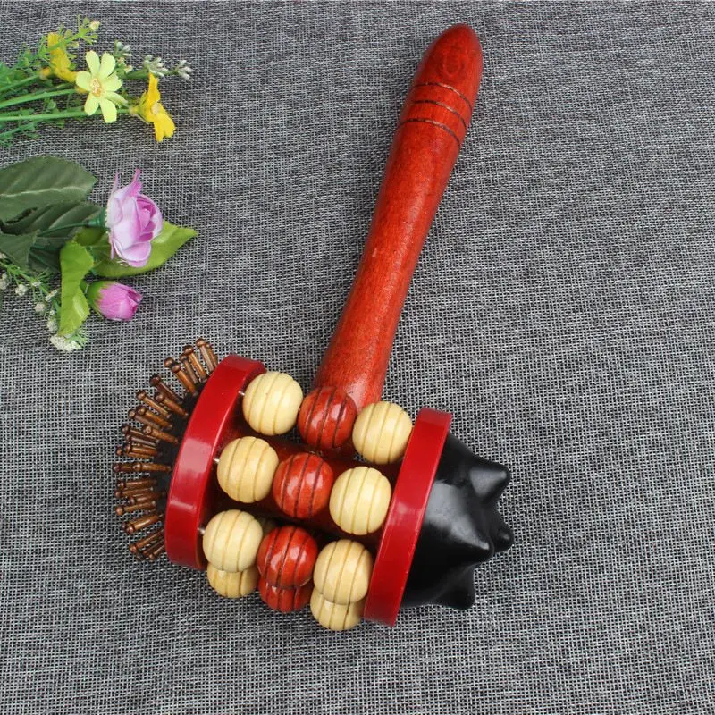 Handle Wooden Roller Massager Hammer Stick Knock Massager With Comb Roller And Needle For Blood Circulation For Back Waist Care