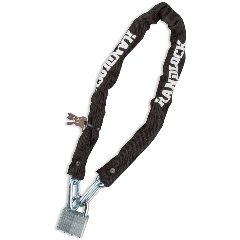 Lucchetto con catena in acciaio saldato. Include due chiavi seghettate nichelate. Esterno con rivestimento tessile rinforzato. Elevata resistenza agli agenti atmosferici ossidazione e corrosione.