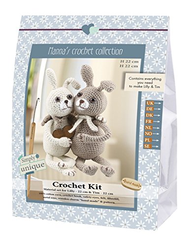 Go handmade 80073 Rabbits, Lilly e Tim 1 Set Uncinetto, Cotone, Crema/Marrone, 16 x 7 x 22 cm
