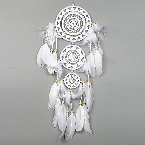 VGIA Handmade acchiappasogni con Piume Bianco da Appendere alla Parete Decorazione Grande