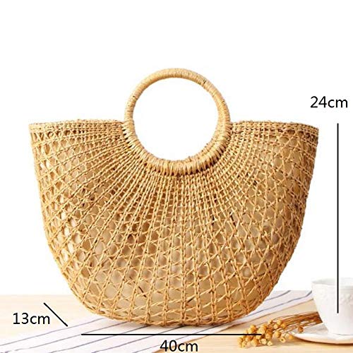 XFYS 1 PCS Handmade Beach Bag Wessiving Bamboo Bag Borsa in Legno Guadale Top-Handle Ladies Round Straw Bag Borsa avvolta-02.