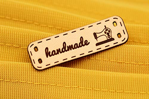 Handmade Etichette Personalizzate Pelle Piane - MOD. HMA, Macchina per Cucire - Handmade Etichette Cuoio rettangolari Handmade da Cucire Fatto a Mano (30 Pezzi - Testo Personalizzato)