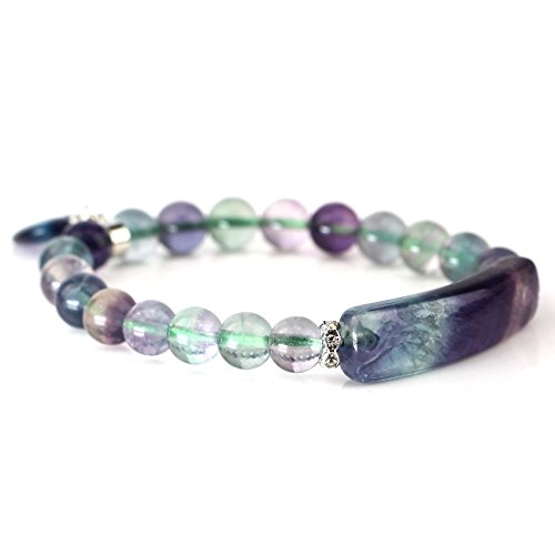 Handmade gemma Bange 18,3 cm braccialetto elastico partita a forma di cuore chakra Beads fluorite