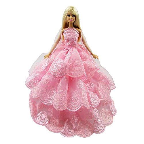 Handmade Quality Multi-Layer Princess Wedding Party Gown Dress for Barbie Clothes Gift- Pink Color Xmas Gift